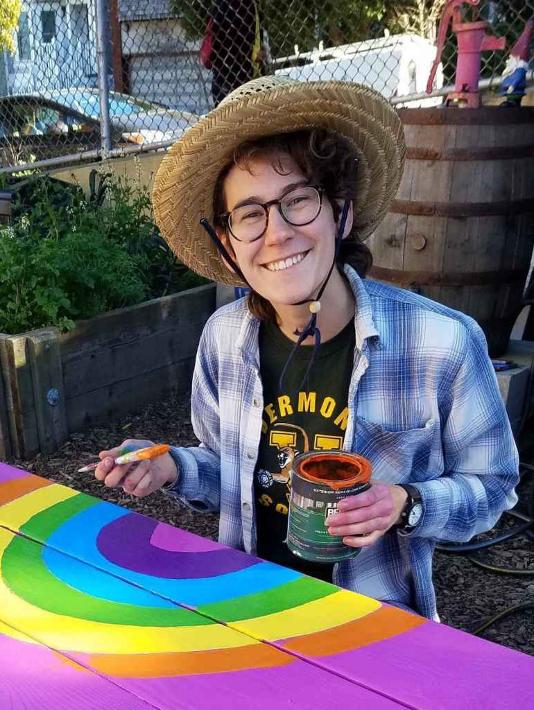 The Lower Garden is divided into large plots for each classroom to grow fruits, vegetables and flowers. Ezekiel McCarter, our CommunityGrows Rosa Parks garden assistant, works with the teachers and their students in this garden, facilitating break time and doing whatever the teachers need. He also created a Garden Dragon club for youth to gain points for helping weed, and care for the garden. Students collect points which they can use to buy fun items and school supplies.